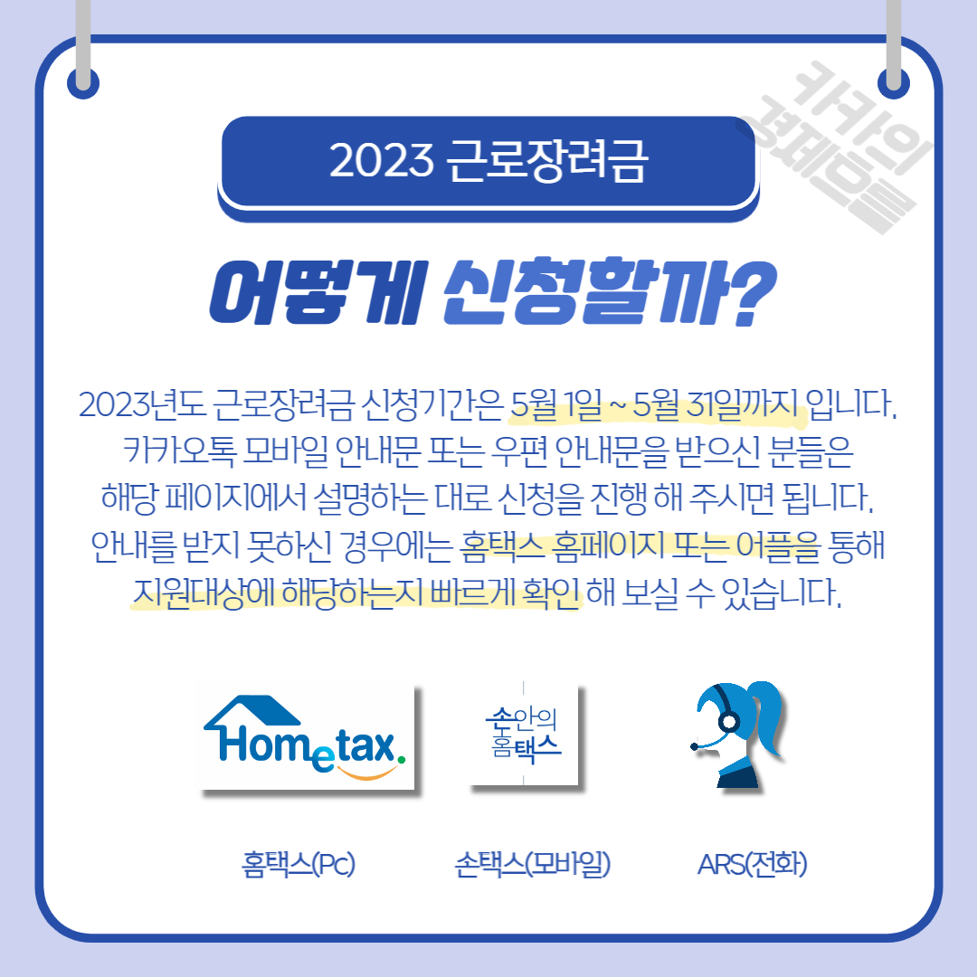 2023년부터 재산 요건을 완화하고 최대 지급액을 늘려 보다 많은 사람이 근로장려금의 혜택을 받을 수 있도록 조정한다고 합니다. 작년에 해당사항이 없었더라도 꼭 한번 확인 해 보시는 것이 좋겠습니다. 근료장려금 신청 자격 조회하기 바로 해 보시고 최대 330만 원의 지원금을 놓치지 마세요.